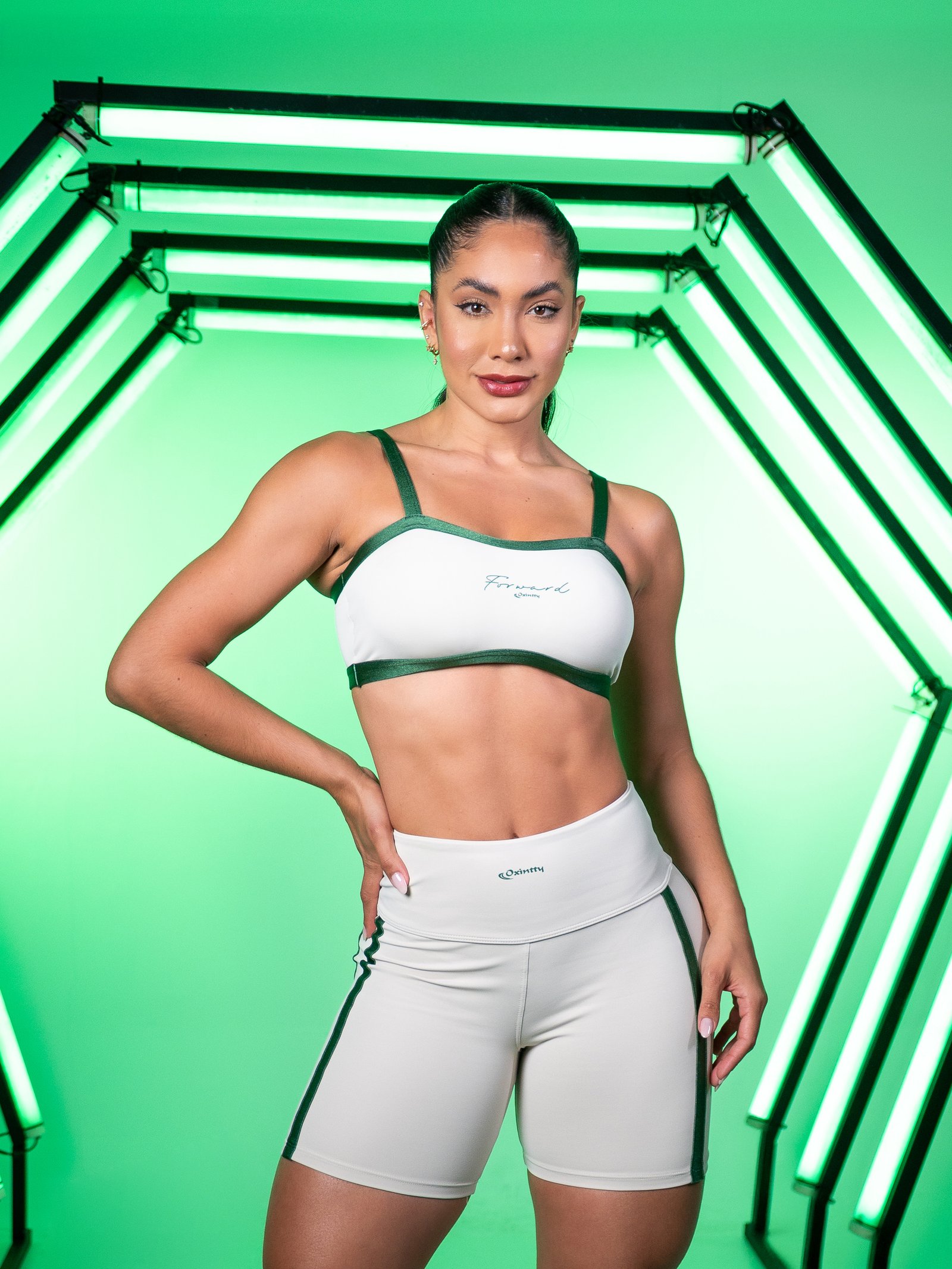 O Short OX20 estreia a assinatura estampada da Oxintty na coleção, com acabamento limpo e moderno. Cós alto firme, tecido macio e encorpado que modela sem apertar e acompanha o movimento. As faixas laterais alongam a silhueta e deixam o look elegante para treino e dia a dia.